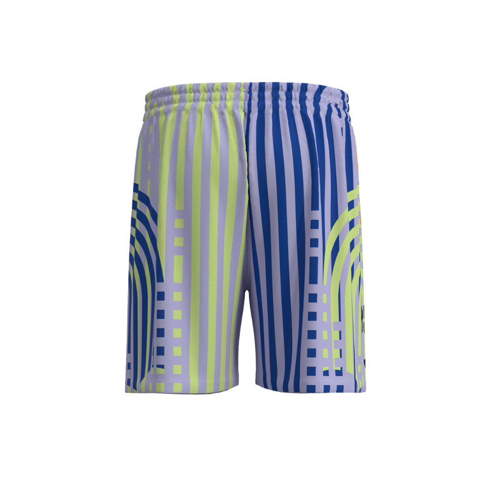 Descrizione: questi shorts presentano una grafica moderna con linee ondulate e colori vivaci creando contrasti dinamici e accattivanti. Perfetti per chi vuole un look originale durante gli allenamenti e il tempo libero.
